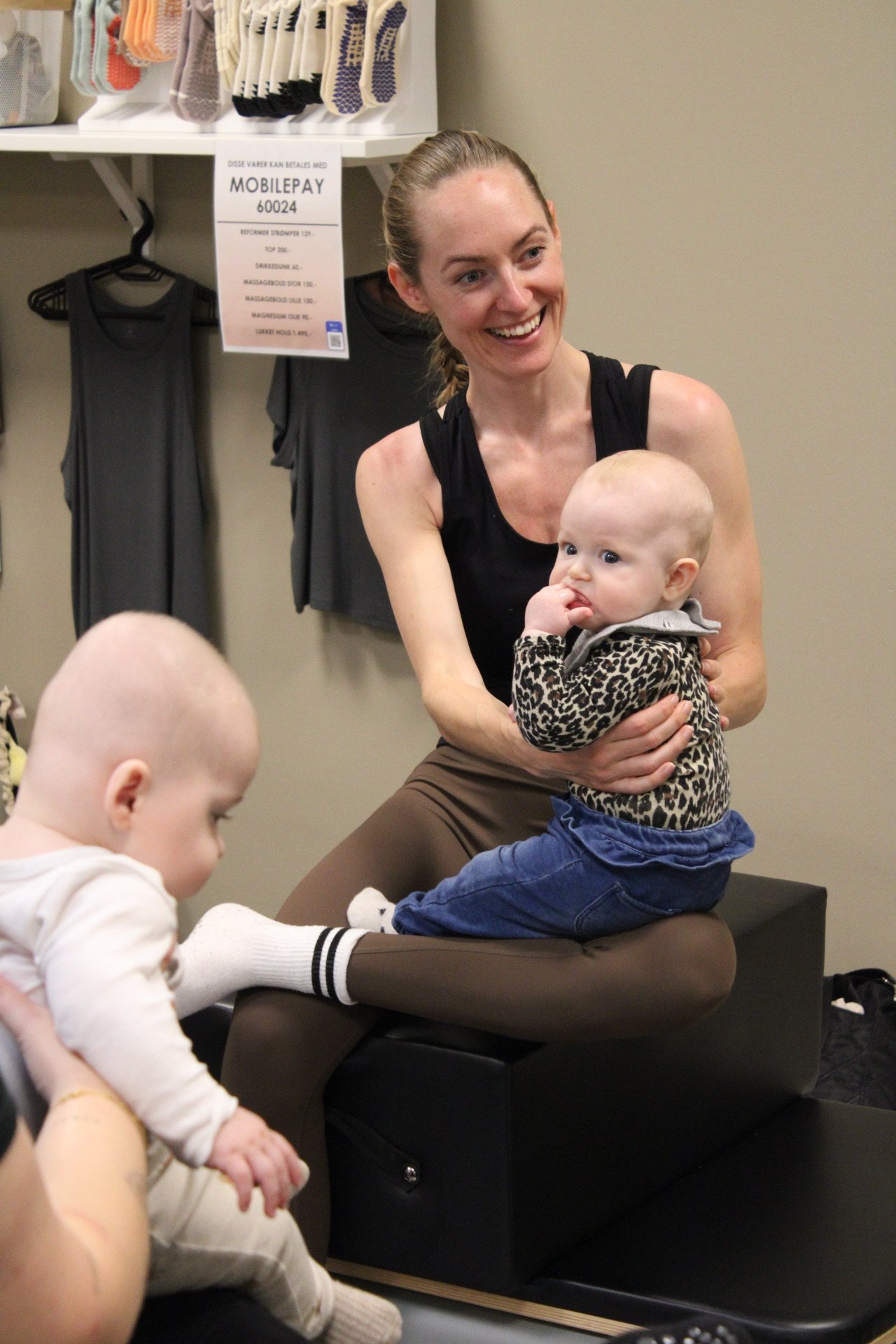 Øvelserne tilpasses individuelt, og der er altid plads til pauser, amning, bleskift – og baby på armen.