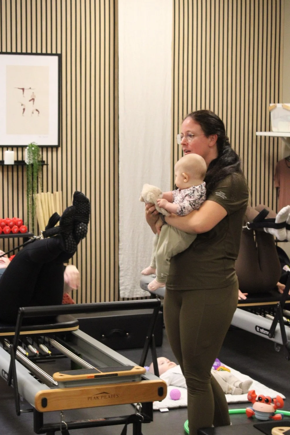 Du træner på et fast hold med ro og nærvær, hvor din baby er velkommen, og hvor der er plads til pauser, behov og det uforudsigelige, som følger med barslen.